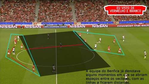 Notava-se já que o Benfica não conseguia pressionar alto, que a reacção à perda era muito mais fraca e cada vez que subiam um pouco no terreno, havia problemas para depois voltar atrás, o que abria espaços entre os sectores. Mesmo assim, ainda existiram algumas situações que poderiam ter sido aproveitadas de outra maneira, devido ao espaço existente, mas depois as más decisões acumularam-se, assim como as iniciativas individuais em vez das combinações.